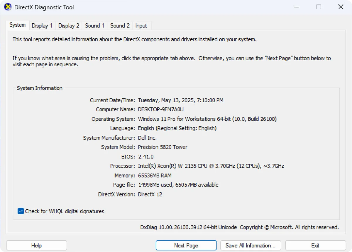 The DirectX Diagnostic Tool (dxdiag) focuses heavily on graphics and sound hardware components.