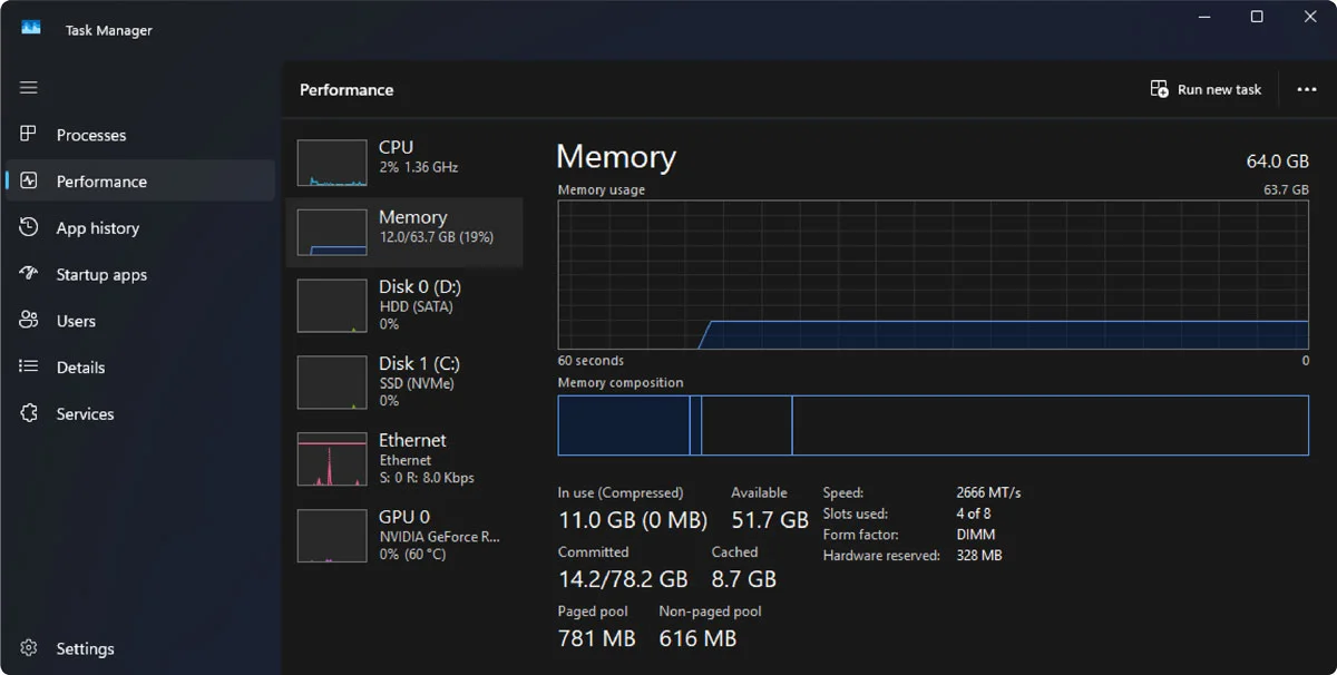 To see how many RAM slots are occupied and available, launch the Task Manager by pressing Ctrl + Shift + Esc. Go to the Performance tab and select Memory. Making judgments on possible RAM upgrades is made easier by the Slots Used indicator which shows how many memory slots are used.