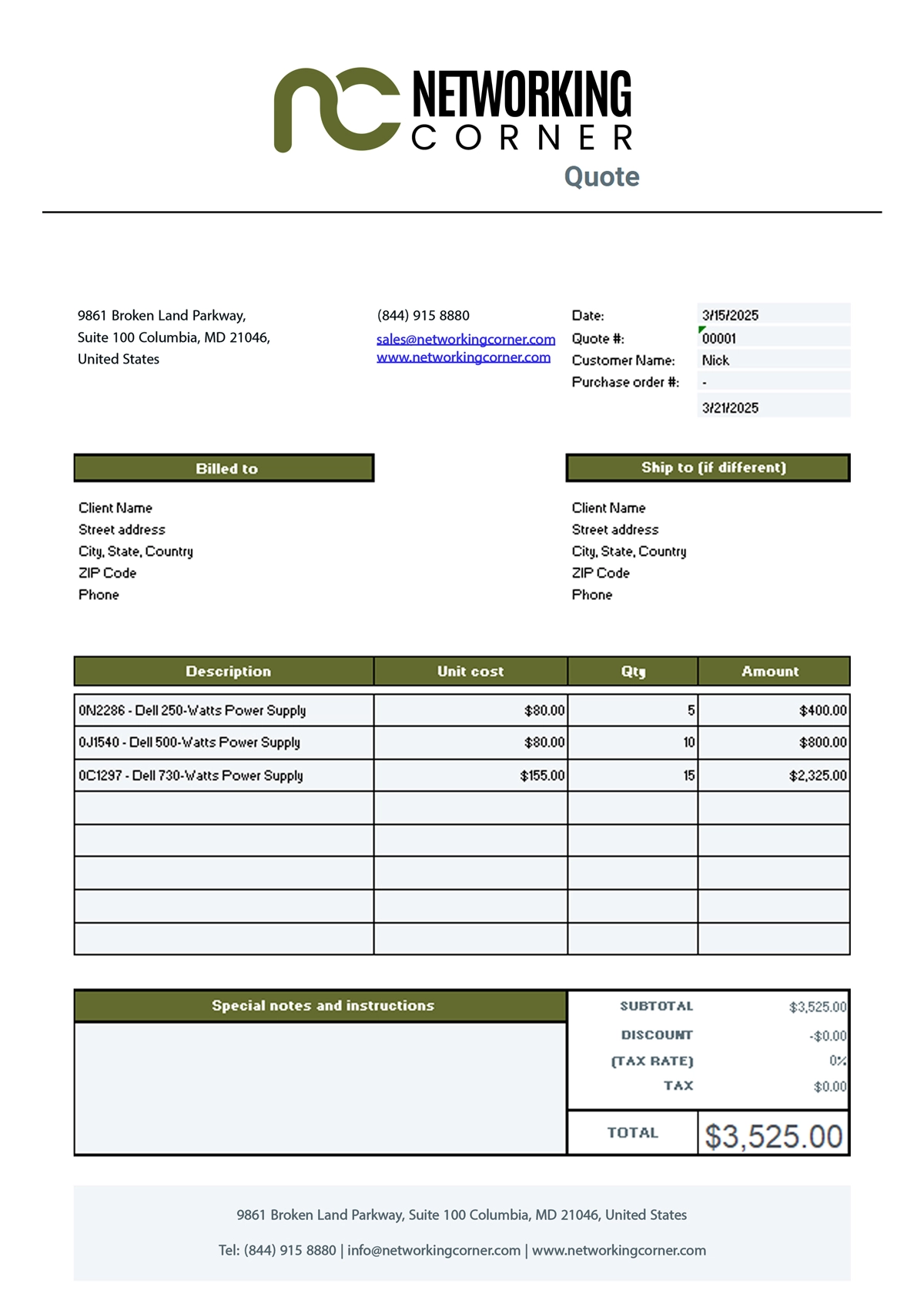 Quotes from this tool do not include quantity discounts